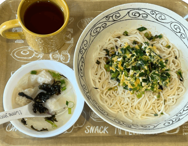 キリっと冷水で〆た麺にニラ玉炒め、仕上げにじゅうじゅうのネギ油ダレを絡めたまぜ麺です。ヒエヒエでもなく、アツアツでもないので食べやすく、上海では食べ盛りのキッズにも人気のメニュー。ランチでは当店自慢の小ワンタンもついて、 […]